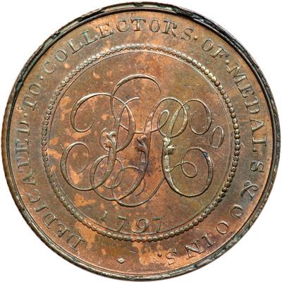 Middlesex. Skidmore's. Halfpenny, 1797. D&H-558. Edge: Slightly Milled. St. Mary. ReverseCypher with date below. NGC graded MS-64 Red & Brown.