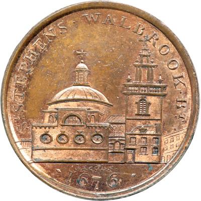 Middlesex. Skidmore's. Halfpenny, ND. D&H-638. Edge: Plain. St. Stephen's: Walbrook. Bt. 1676. Reverse: Cypher. Rare. NGC graded MS-64 Red & Brown.