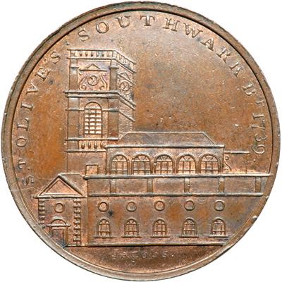 Middlesex. Skidmore's. Halfpenny, ND. D&H-672. Edge: Plain. St. Olive's. Reverse: Cypher. NGC graded MS-64 Brown.
