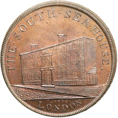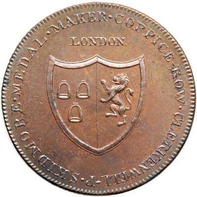 Middlesex. Skidmore's. Penny, ND. D&H-162. Edge: I PROMISE TO PAY ON DEMAND THE BEARER ONE PENNY. Skidmore's Clerkenwell Series. The South Sea House London. NGC graded MS-66 Brown.