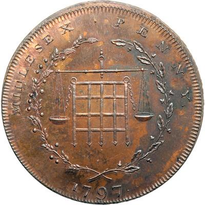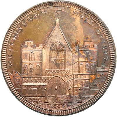 Middlesex. Skidmore's. Penny, ND. D&H-168. Edge: I PROMISE TO PAY ON DEMAND THE BEARER ONE PENNY. Skidmore's Miscellaneous Series. Westminster Hall. Scarce. NGC graded Proof 65 Red & Brown.