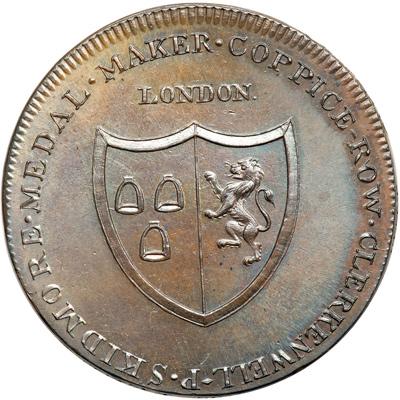 Middlesex. Skidmore's. Penny, ND. D&H-164. Edge: I PROMISE TO PAY ON DEMAND THE BEARER ONE PENNY. Skidmore's Clerkenwell Series. Lord Stormont's Wandsworth. Surry. Scarce. NGC graded MS-66 Brown.