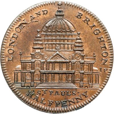 Middlesex. Spittle's. Halfpenny, 1795. D&H-903. Edge: Plain. View of St. Paul's. Reverse: Shield of arms. NGC graded MS-66 Brown.