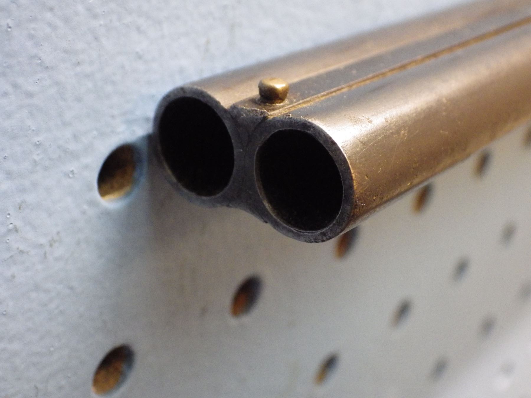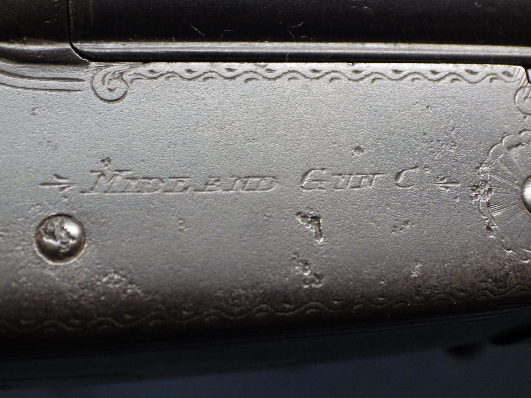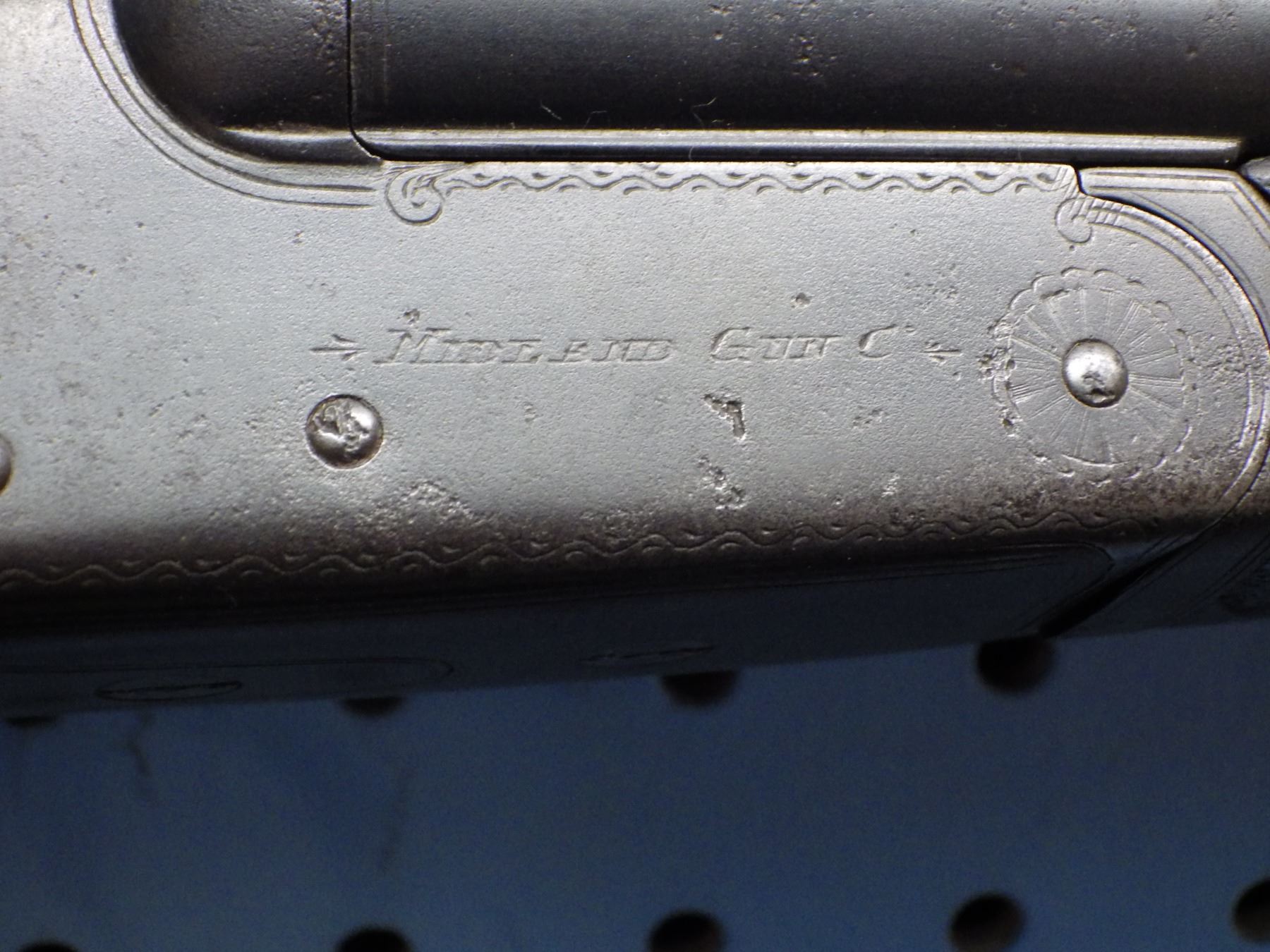 Midland Gun Co. 410 double barrelled shotgun serial number 76033, 29 3/4" barrels shiny with pitting, stock broken at wrist, no attempt has been made to repair it. … CONSIGNOR # F - 15. -- BORE CONDITIONS PROVIDED BY CONSIGNOR