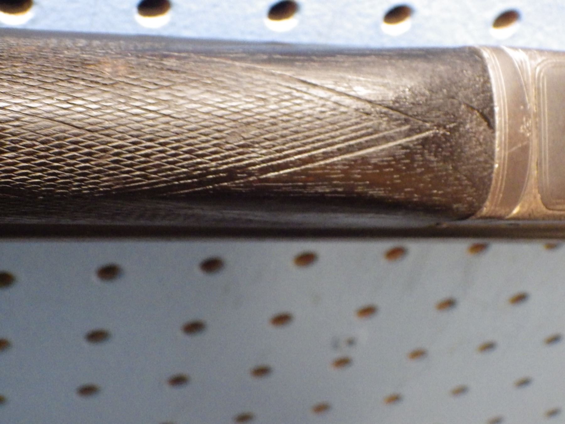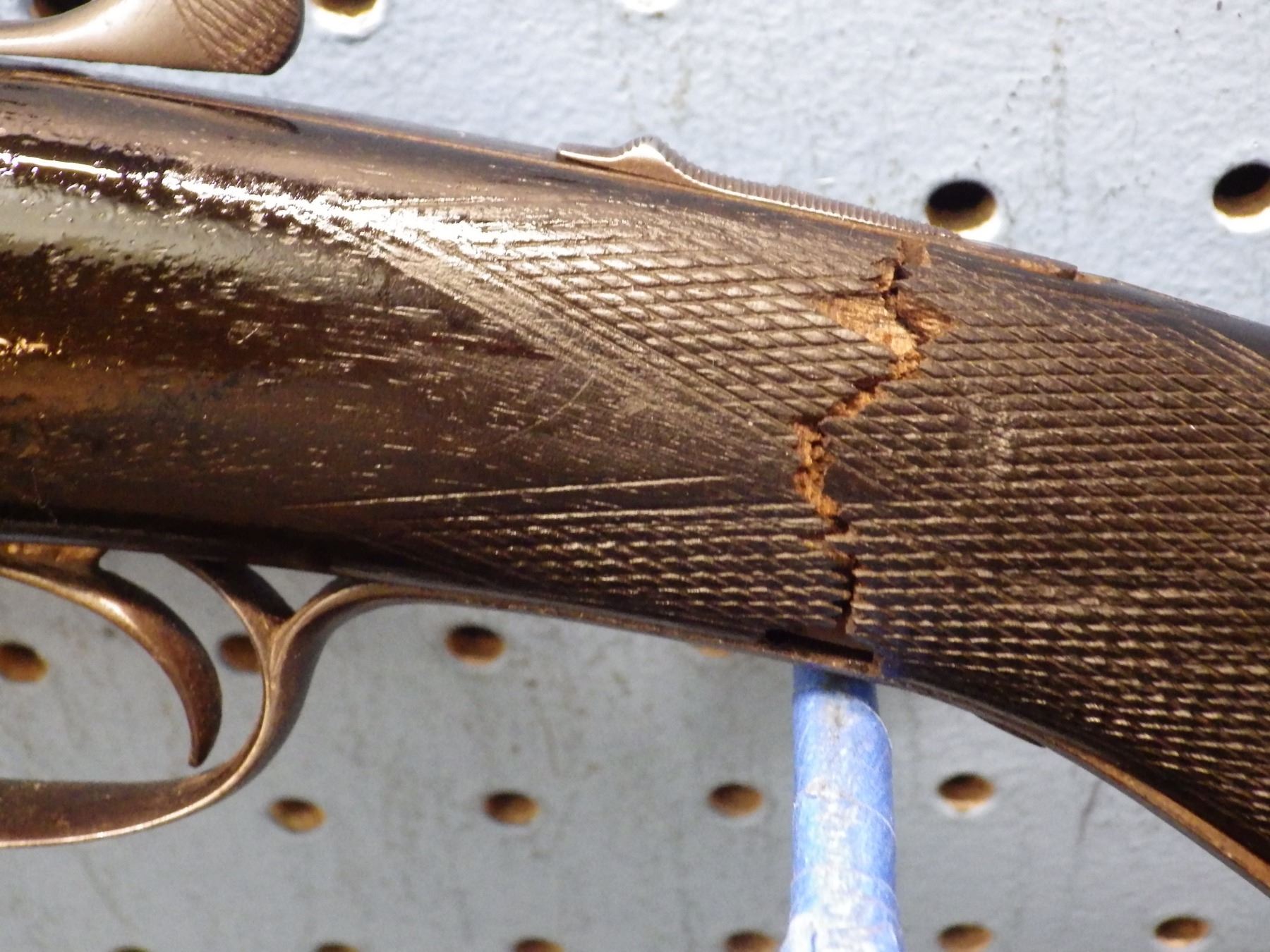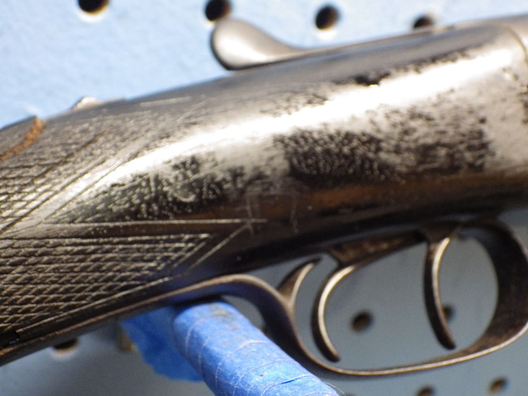 Midland Gun Co. 410 double barrelled shotgun serial number 76033, 29 3/4" barrels shiny with pitting, stock broken at wrist, no attempt has been made to repair it. … CONSIGNOR # F - 15. -- BORE CONDITIONS PROVIDED BY CONSIGNOR