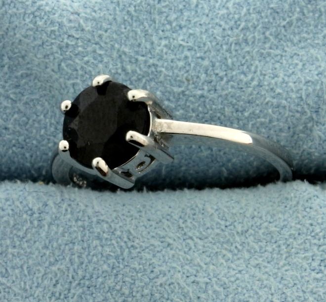 Genuine 7mm Midnight Sapphire gemstone set in Platinum over Sterling Silver ring. Size 7 2.2g