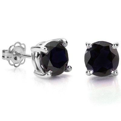 Genuine round cut Midnight Blue Sapphire gemstones measure 6mm each and are set in Platinum over Sterling Silver stud earring mountings with friction backs. Deep, dark color for a unique look! 1.4g