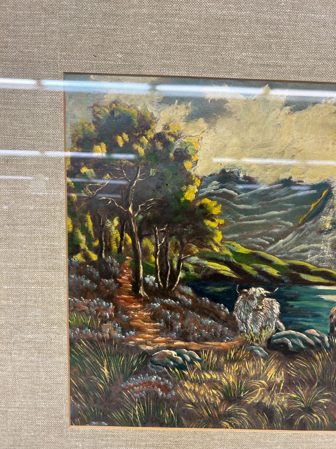 "Midst Heather & Hills" Framed Original Painting Cows in Landscape, Vintage Antique 3ft x 28"
