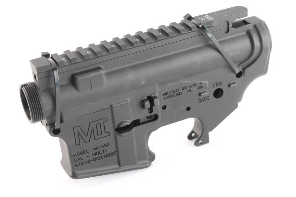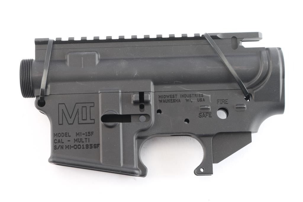 SN: MI-001956F. Stripped set. Lower-machined from 7075-T6 forged aluminum. Matte Black hard-coat anodized Mil 8625 Type 3 Class 2. Marked “CAL-MULTI” Works with standard AR15 components and magazines. Upper-Machined from billet 6061 Aluminum