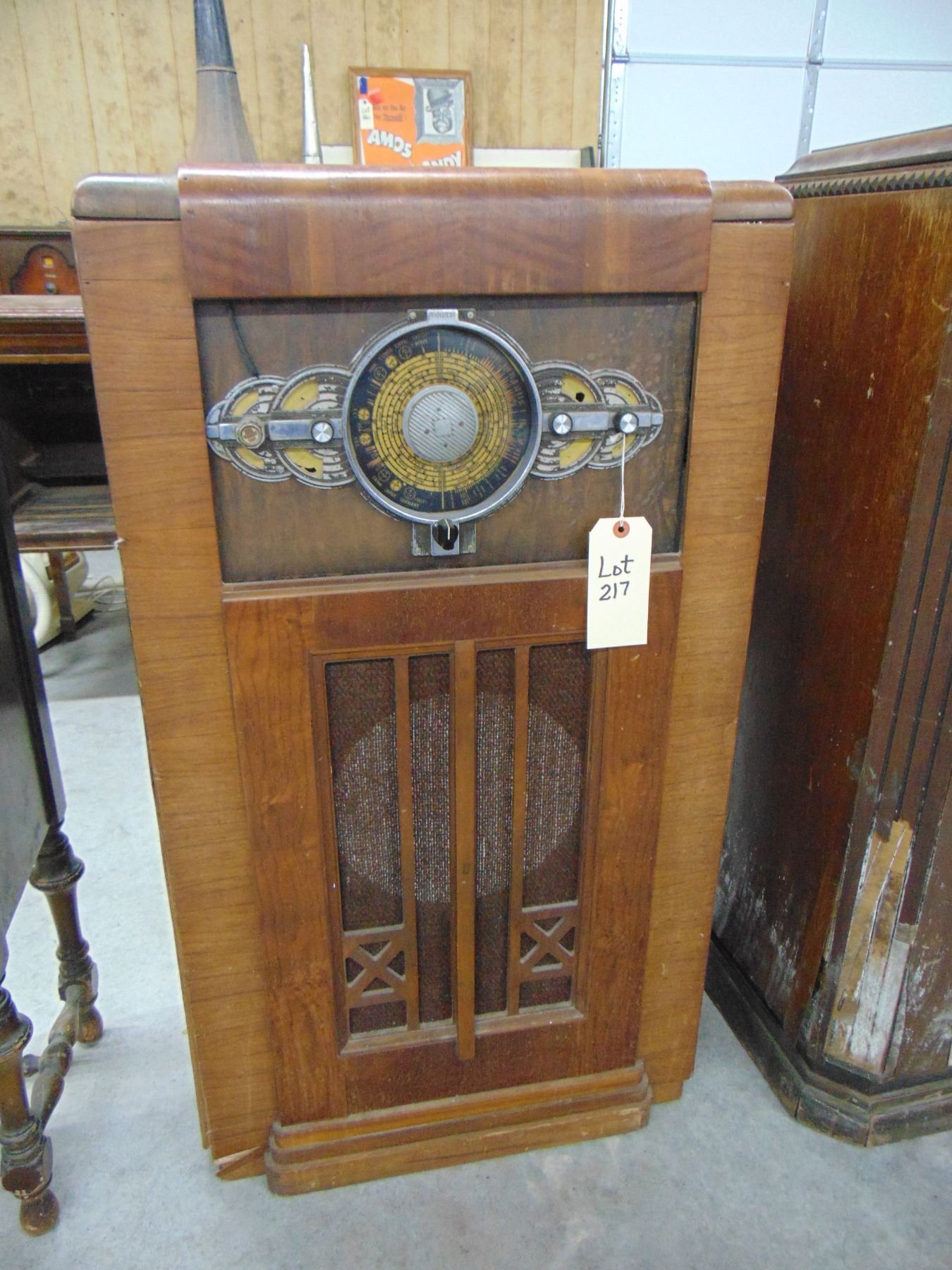 Midwest console; model 18-37; no speaker; cabinet needs restoration