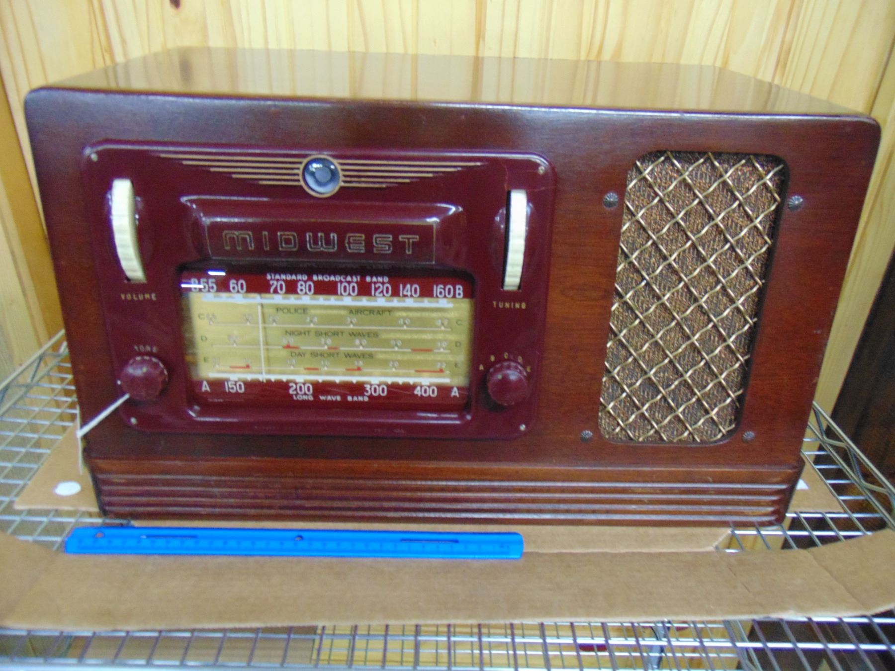 Miraco large wood table radio model 98; circa 1949; works well with bright eye tube; works