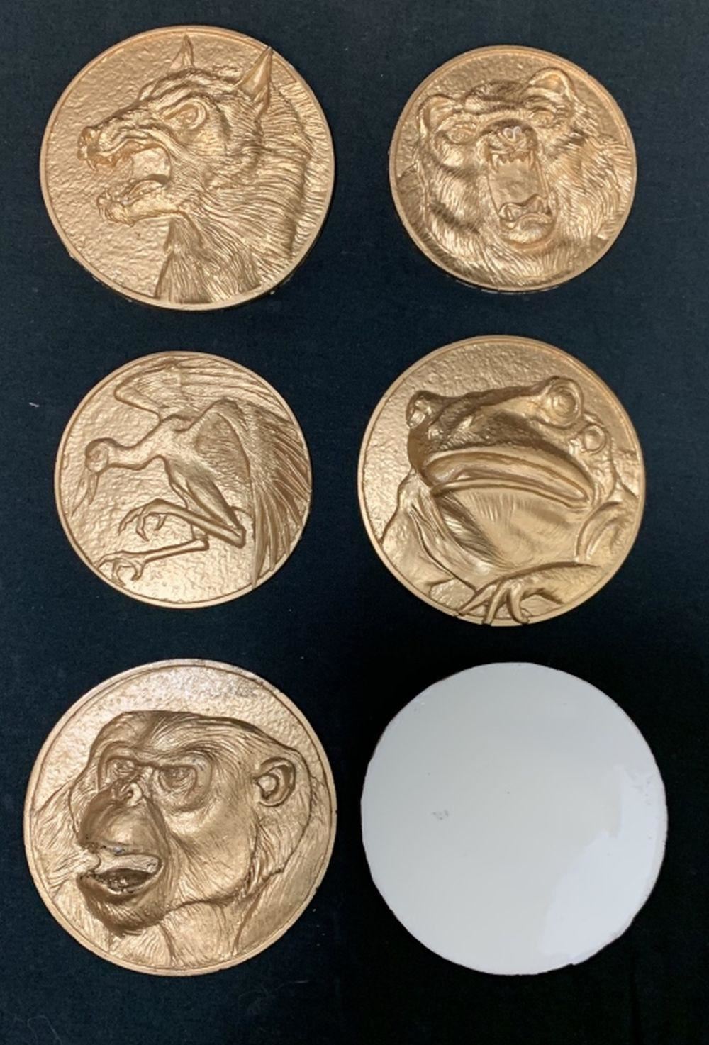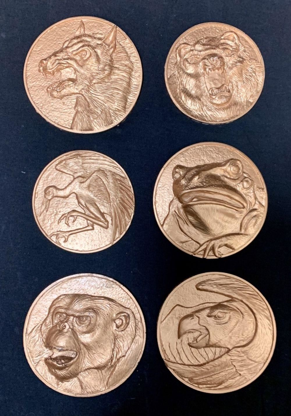 Original set of six chest medallions used on the movie armor from "Mighty Morphin Power Rangers: The Movie". Before the film's release, the studio commissioned 10 sets of touring suits that would be used at the film premiers all around the globe. These medallions were made by molding the original movie costume pieces and casting them in urethane. These came directly from Global Effects, the company that made the promotional suits.