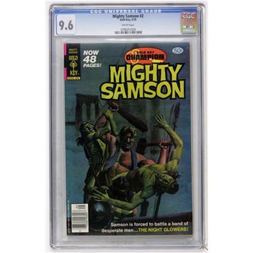 <B>Mighty Samson #2 (Gold Key, 1965) CGC NM+ 9.6 White pages.</B></I> Morris Gollub painted cover. Highest grade yet assigned by CGC for this issue. Overstreet 2007 NM- 9.2 value = $75. CGC census 10/07: 1 in 9.6, none higher. <I> From the Fantastic Frank Collection.</B></I><BR><BR><b>Shipping:</b> Comics - Slabbed (certified) (<a target="_blank" href="http://www.heritageauctions.com/common/shipping.php">view shipping information</a>)