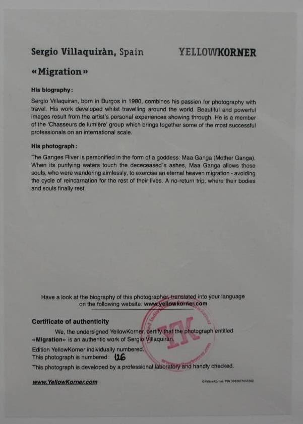 Migration Certified Photograph, Sergio Villaquiran (2) YellowKorner Certified Photograph. Certificate of Authenticity from YellowKorner affixed to the back. Matted Dimensions 16"x20". Protected with Clear Mylar Sleeve.