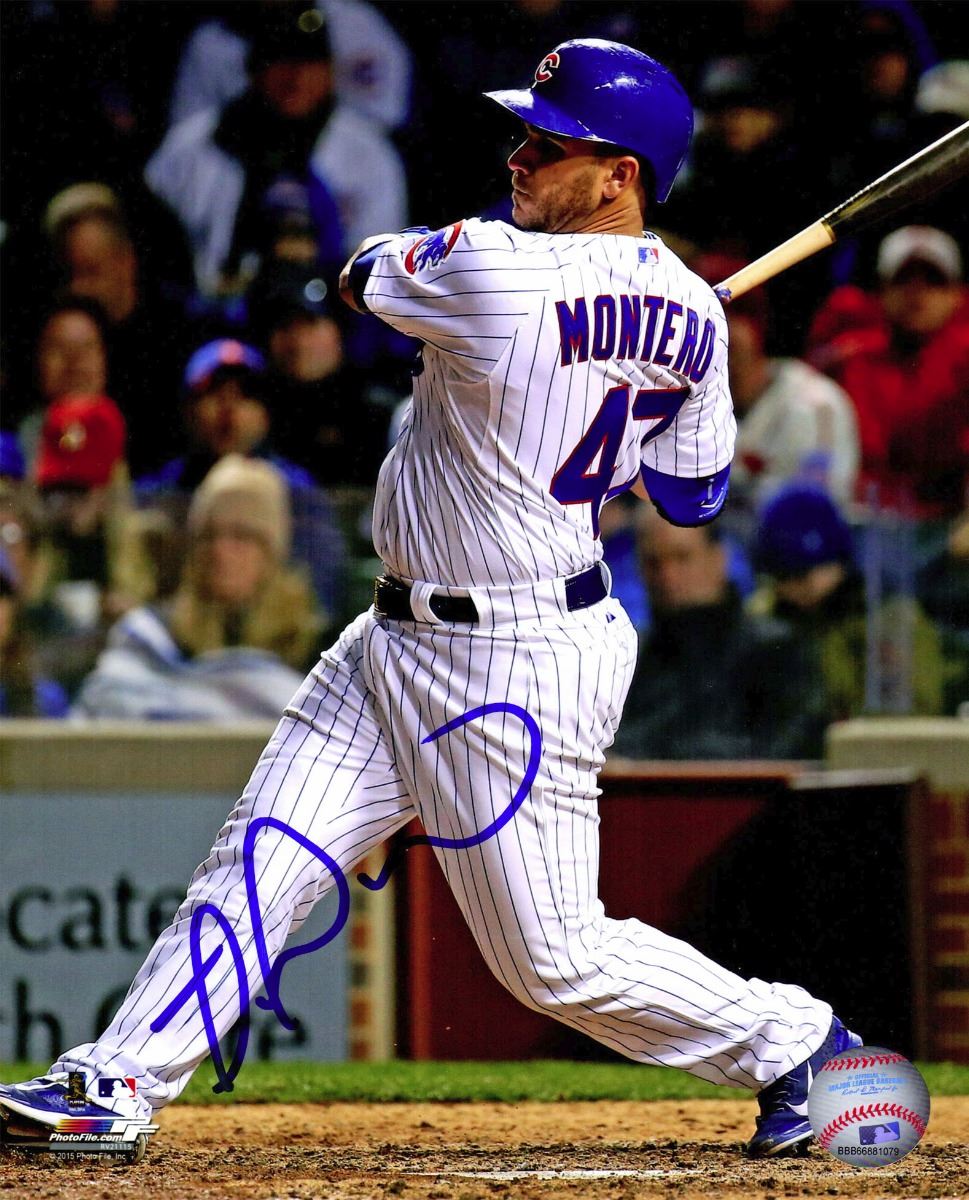 Miguel Montero signed Chicago Cubs batting action 8x10 photo. Item comes with a Schwartz Sports Memorabilia tamper-proof numbered hologram and Certificate of Authenticity which can be verified online.