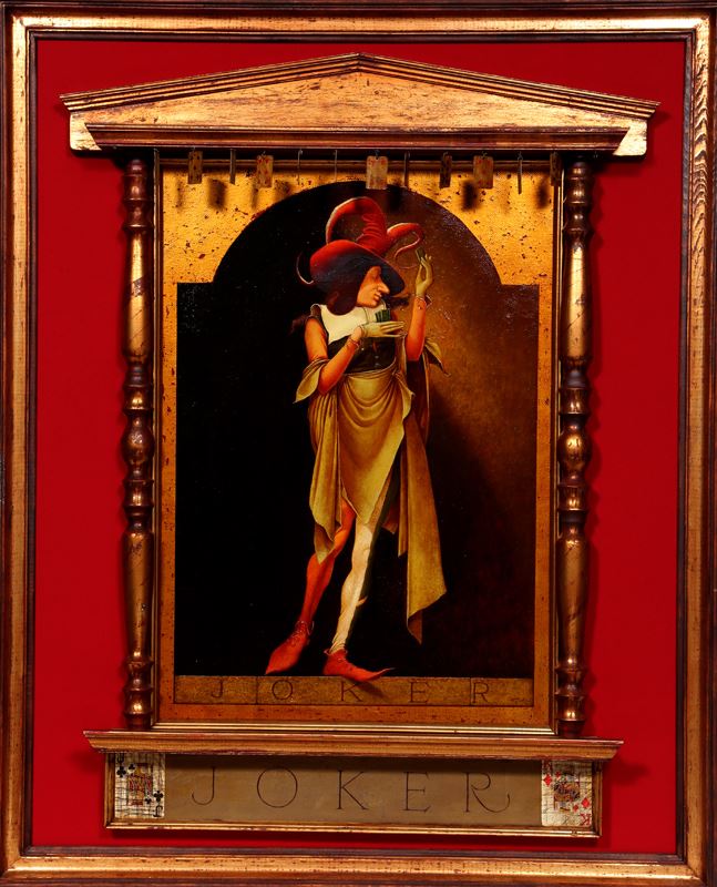 Mihail Sorin, Joker, Oil Painting adorned with Mini Playing Cards