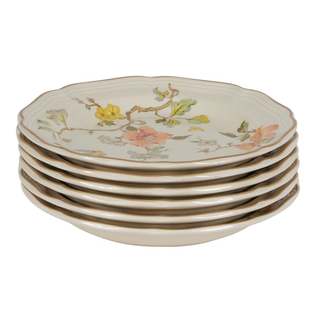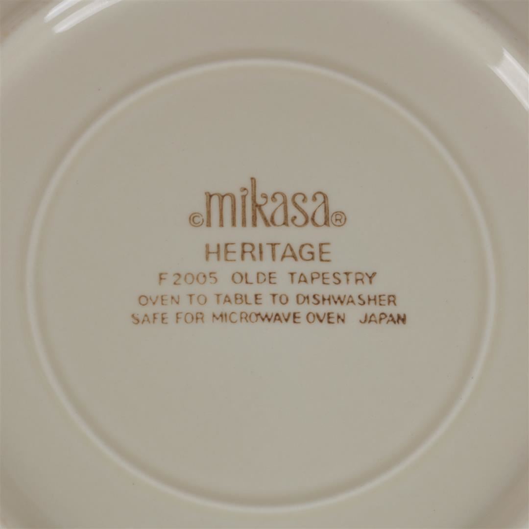 One set of Mikasa Heritage "Olde Tapestry" salad plates, measuring approximately eight inches in diameter. These plates are in excellent condition with no chips, cracks or damage. There may be a few tiny utensil marks in the center of the plate. This pattern was made for a very short time, only from 1979 - 1984.