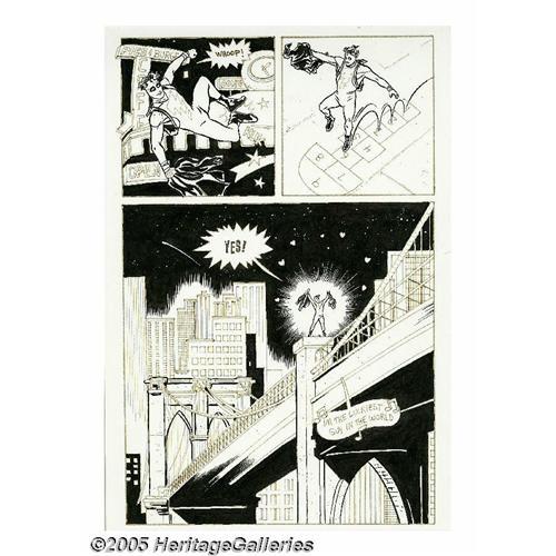 <B>Mike Allred - Madman Adventures #1, Page Original Art (Tundra, 1992).</B></I> Mike Allred burst into the comics scene with " "<B>Madman</B></I>, published by Tundra in 1992, in a duo-tone comic book. From this humble beginning, the character has evolved from its small, cult status into a stylish, full-color book published by Dark Horse Comics. Here is a groovy panel page by Allred, featuring the world's snazziest hero! The image area measures 10.5"" x 16.5"". There is some slight fading to some of the linework (apparently Allred used delible ink, which has since faded), otherwise the work is in Excellent condition. <BR><BR><B>Important notice:</B> Heritage usually auctions material at the rate of 200-250 lots per hour. On some occasions eBay Live bid software or the Internet may not be able to keep up with the pace of the auction. We recommend placing a realistic absentee bid now as insurance to avoid disappointment. Occasionally the auctioneer may eliminate or reject an eBay Live bid, and the auctioneer may also reopen a lot after the close of the eBay live bidding (usually because we missed an audience bid), and may reject your bid even if it shows you as the winning bidder. By bidding via eBay Live, you agree that Heritage may award the lot to another bidder at its sole discretion under the circumstances described above or any other reasonable circumstances. Since eBay bids are not shown to us until we open the lot on the floor, we treat those bids just like floor bids. In most cases the floor responds before the eBay bid is presented to us, due to Internet lag time, so for consistency we have made it a policy that floor bids are always considered first over tie eBay live bids. Also please note that all Heritage lots purchased through eBay Live carry a 20% Buyer's Premium. Please make sure you read the Terms and Conditions before you bid. This lot is being auctioned in conjunction with a live floor auction by Heritage Galleries & Auctioneers. All final auctio