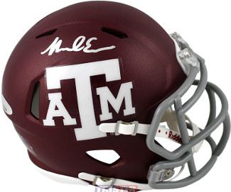 After being redshirted as a freshman in 2011, Mike Evans had 82 receptions for 1,105 yards and five touchdowns in 2012. He received freshman All-SEC honors from the league's coaches.In the Alabama game during the 2013 season, Evans caught 7 passes for a school-record 279 yards. He received AT&T ESPN All-America Player of the Week honors. During the 2013 Auburn game, he broke his own record after he compiled 11 receptions for 287 yards and four touchdowns. As a sophomore in 2013, Evans was a first-team All-Southeastern Conference (SEC) selection. On December 17, 2013, it was announced that Evans was selected to the 2013 AP All-America Team, First Team. Evans ended the 2013 season with 69 receptions for 1,394 yards and twelve touchdowns. Mike Evans has hand signed this Texas A&M Aggies Speed Maroon Matte Mini Helmet. Tri-Star Hologram and Certificate of Authenticity