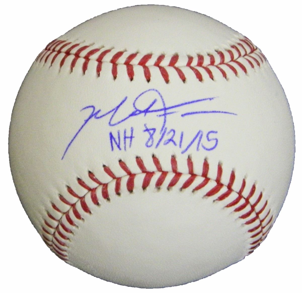 Mike Fiers signed Rawlings official MLB baseball with 'NH 8-21-15' inscription. Item comes with a Schwartz Sports Memorabilia tamper-proof numbered hologram and Certificate of Authenticity which can be verified online.