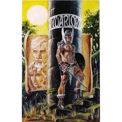 <B>Mike Grell - Warlord #100 Cover Original Art (DC, 1985).</B></I> This unchained image of Skartaris freedom fighter, Travis Morgan, graced the cover of the double-size 100th issue of <B>Warlord</B></I>. Painted in mixed media, this is the first painted cover by creator, Mike Grell! The art measures 10.25" x 16", and is in Excellent condition. Signed by Mike Grell at the left.<BR><BR><b>Shipping:</b> Small Flat (<a target="_blank" href="http://www.heritageauctions.com/common/shipping.php">view shipping information</a>)