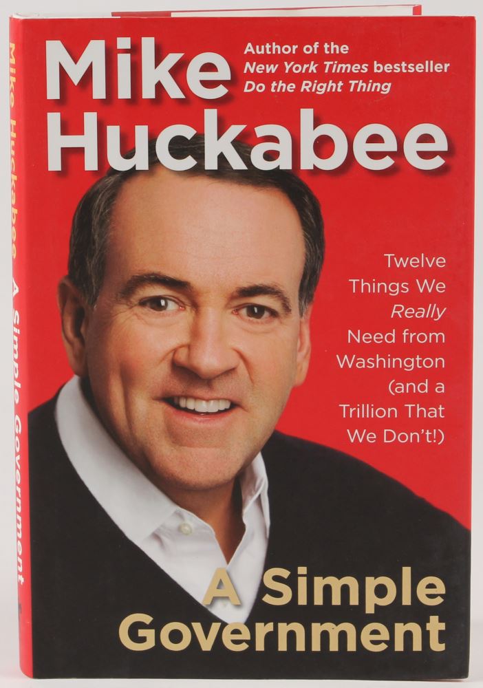 "A Simple Government: Twelve Things We Really Need from Washington (and a Trillion That We Don't!)" Hardcover Book has been hand-signed in blue felt-tip pen by Mike Huckabee.