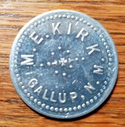 Mike had great foresight for the trading business and Indian arts and crafts. He actively pursued the use of trade tokens, and many variations of Mike Kirk trade tokens exist, including some knockoffs (Which he, obviously, would not support.). Other Kirk tokens are ME Kirk (Gallup) and Kirk Brothers (Gallup).