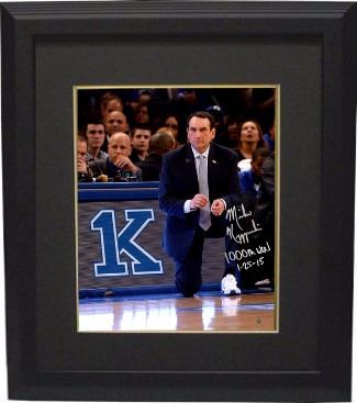 Mike Krzyzewski has served as the head men's basketball coach at Duke University since 1980. At Duke, Krzyzewski has led the Blue Devils to four NCAA Championships, 12 Final Fours, 12 ACC regular season titles, and 13 ACC Tournament championships. On November 15, 2011, Krzyzewski led Duke to a 74–69 victory over Michigan State at Madison Square Garden to become the coach with the most wins in NCAA Division I men's basketball history. Krzyzewski's 903rd victory set a new record, breaking that held by his former coach, Bob Knight. On January 25, 2015, Duke defeated St. John's, 77–68, again at Madison Square Garden, as Krzyzewski became the first Division I men's basketball coach to reach 1000 wins. Mike Krzyzewski has hand signed this Duke Blue Devils 1000th Win 16x20 Photo with "1000th Win 1-25-15". Steiner Sports Hologram and Certificate of Authenticity. Custom Black Mat and Premium Black Frame as shown.