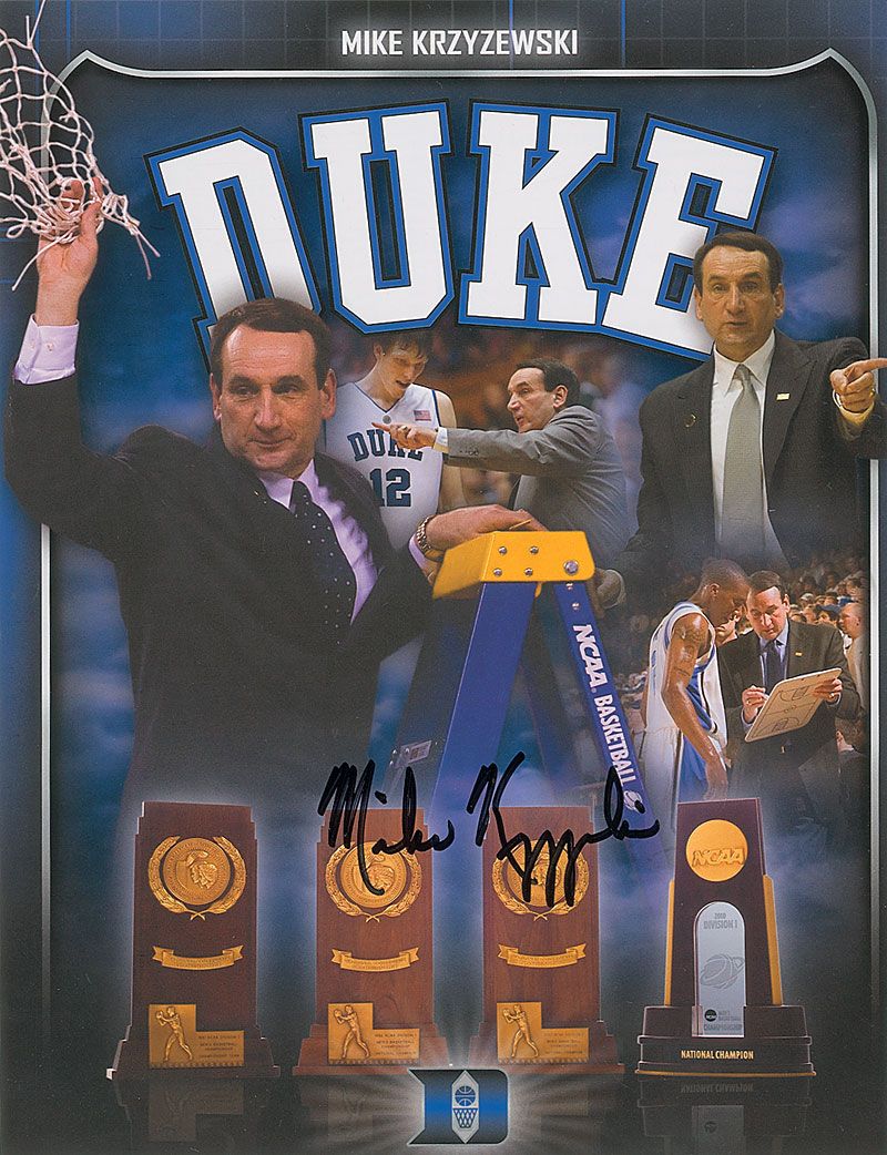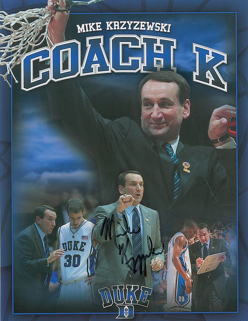 Two color composite 8 x 10 cardstock photos of Krzyzewski, each signed in black felt tip. In fine condition.