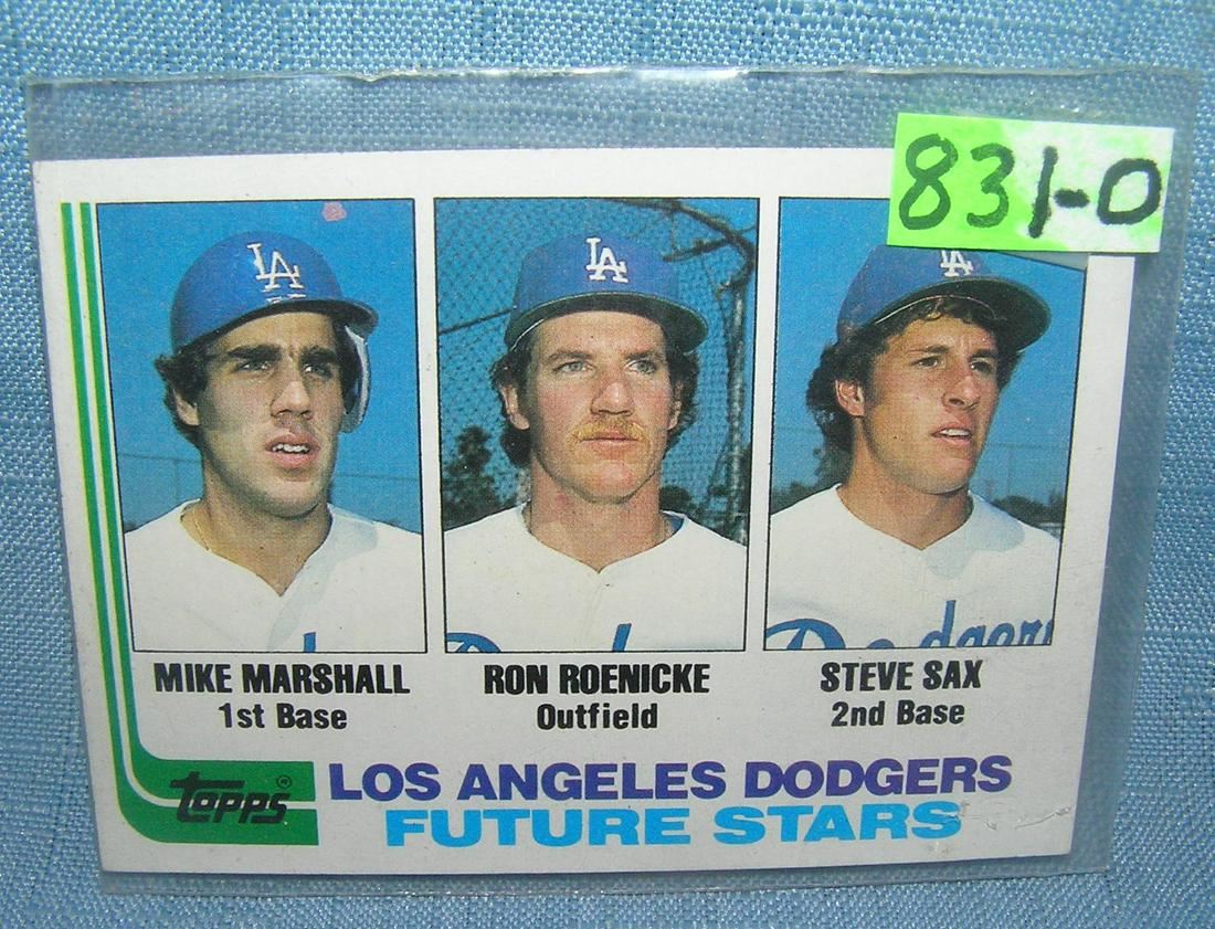 Mike Marshall, Steve Sax and Ron Roenicke rookie baseball card est. value $25.00-$30.00