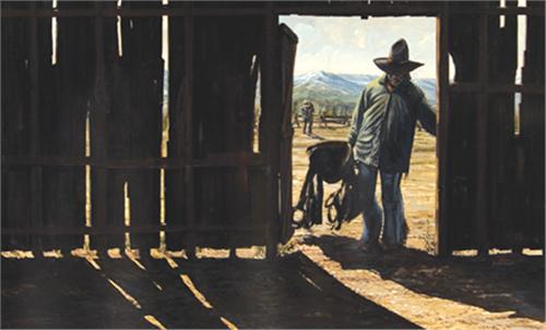 Mike Miller. Wranglers. 14 1/2" x 24" oil on board. (est $800-1,200). Provenance: Coile Collection.