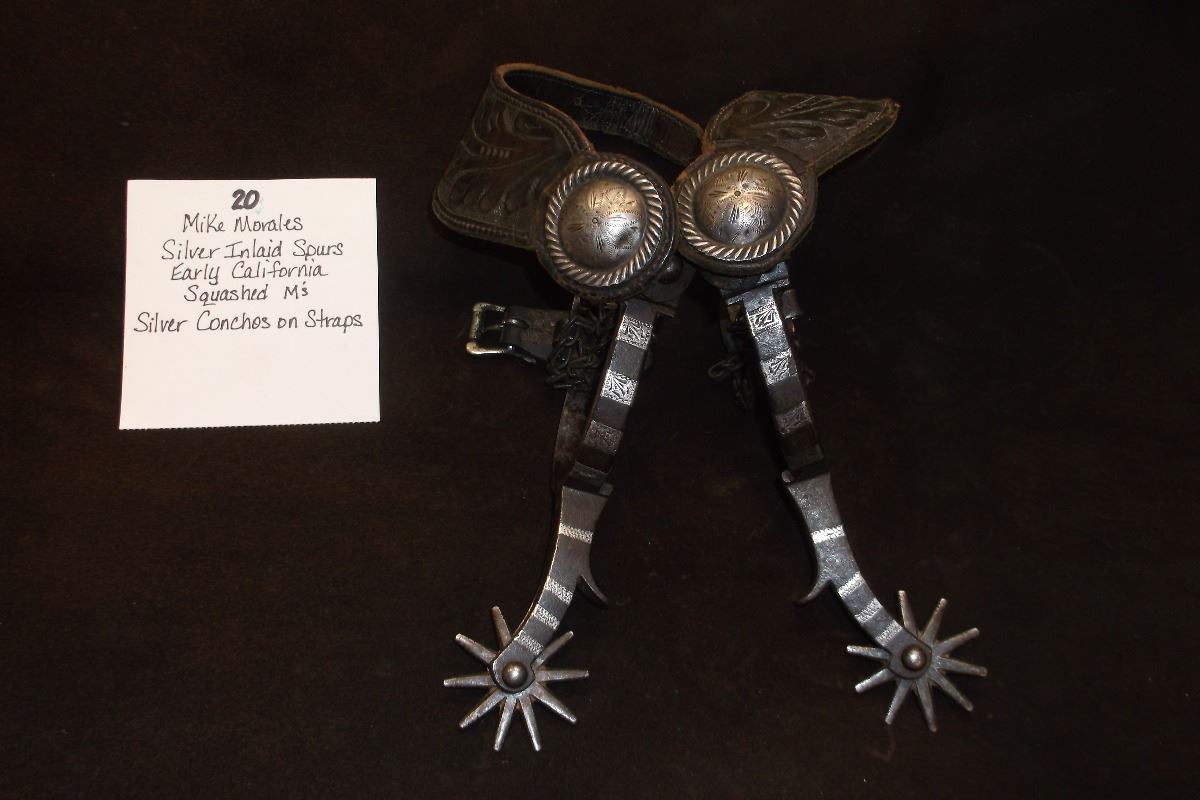 Mike Morales Silver Inlaid Spurs- Early California- Squashed M's- Silver Conchos on Straps