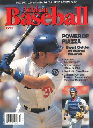 This is an Athlon Sports 1994 MLB Baseball Magazine with Los Angeles Dodgers Slugger Mike Piazza on the cover. This Preview has team analysis, predictions, lineups and more for the 1994 Season