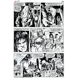 Mike Ploog - Original Art for Conan the Barbarian #57, page 23 (Marvel, 1975). Mike Ploog only did one fill-in issue of Conan the Barbarian, but his bold, full-blooded style made him a perfect choice to detail the adventures of the Warrior King of Cimmeria. This is amply evident in this exceptional page from issue #57, which Ploog both penciled and inked. Even though Conan is being held captive, note the coiled strength in his sinewy arms, as well as the wealth of detail in the backgrounds. A superb piece from the prime era of Ploog's involvement in comics. 12" x 18" on standard Marvel stock. Important notice: We expect to be auctioning lots at the rate of 200-250 per hour. Sometimes eBay Premier live bid software cannot keep up with that pace, so we strongly recommend that you place a realistic proxy bid now as insurance to avoid disappointment. Also please note that all Heritage/CAA lots purchased through eBay Premier carry a 20% Buyer's Premium. Please make sure you read the Terms and Conditions.