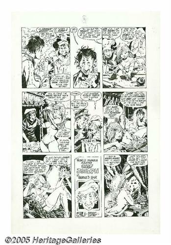 <B>Mike Ploog - Twisted Tales #2, page 5 Original Art (Pacific Comics, 1983).</B></I> The things we do for love! Poor schlub Joseph is whipped into submission by his unrequited love Lila's demands for furniture, and fur coats, working his assets off to please her. Mike Ploog produced this stimulating page filled with panel after panel of lovely Lila luxuriating in the least amount of clothes possible. Here is page 5 from the Bruce Jones story, "Over His Head." The art has an image area of 11.5" x 17.5", and is in Excellent condition.