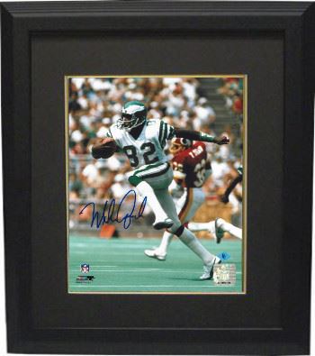 Mike Quick was a surprise 1st round pick by the Eagles in the 1982 NFL Draft. He developed into a five-time Pro Bowler, having been selected consecutively from 1983 to 1987. He led the NFL in receiving yards in 1983 with 1,409 and finished second in 1985 with a total of 1,247. On November 10, 1985, Mike Quick caught a 99-yard touchdown pass from Ron Jaworski in overtime (an Eagles team record, and tied with eleven other QB-WR combos as an NFL record), as the Eagles beat the Atlanta Falcons in the game. In 1987, the Eagles Honor Roll was established and Mike Quick was inducted in 1995. Mike Quick has hand signed this Philadelphia Eagles 8x10 Photo. Certificate of Authenticity from Athlon Sports Collectibles. Custom Black Mat and Premium Black Color Framed as shown.