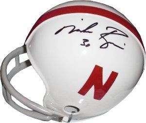 As a senior, Mike Rozier\'s statistics were a nation\'s best, 2,486 total yards with 2,148 of those coming on the ground and twenty-nine touchdowns scored. His magical senior season was capped when he was awarded the Heisman Trophy, given to the best individual player in college football and was again an All-American. Mike Rozier has hand autographed this Nebraska Cornhuskers Riddell 2bar mini helmet. Certificate of Authenticity from Athlon Sports.