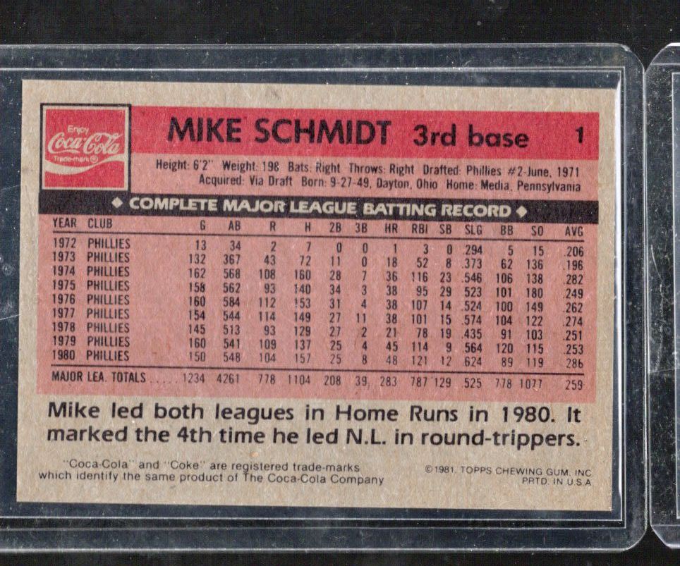 Mike Schmidt Coca-Cola 1981 Topps #1