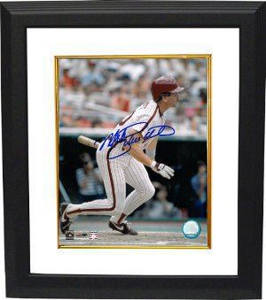 Mike Schmidt played third baseman for his entire career with the Philadelphia Phillies. Schmidt is considered among the greatest third basemen in the history of major league baseball. Schmidt was voted National League MVP three times, an All-Star 12 times, and received more votes than any other third baseman in 1999's Major League Baseball All-Century Team. In 1995, he was inducted into the Baseball Hall of Fame. Mike Schmidt has hand autographed this Philadelphia Phillies 8x10 Photo. Photo from the Signing and Certificate of Authenticity from Athlon Sports. Custom White Mat and Premium Black Frame as shown.