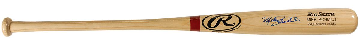 Official Rawlings Big Stick Mike Schmidt model baseball bat signed in blue felt tip on the barrel. In fine condition.