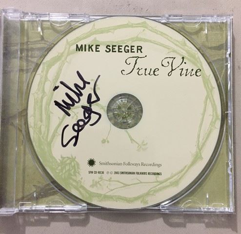 Mike Seeger's CD "True Vine", released in 2003, is autographed by the singer. Jewel case includes front cover/booklet of album information, as well as back cover with a photo of Mike Seeger and song listings.