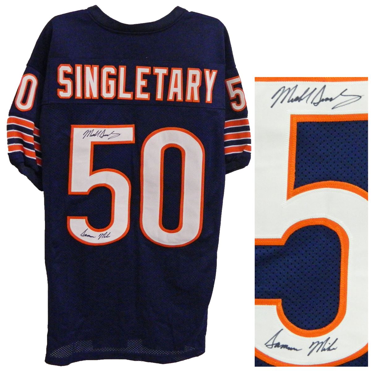 Mike Singletary signed navy custom throwback jersey with 'Samurai Mike' inscription. Item contains the full Michael Singletary signature and comes with a Schwartz Sports Memorabilia tamper-proof numbered hologram and Certificate of Authenticity which can