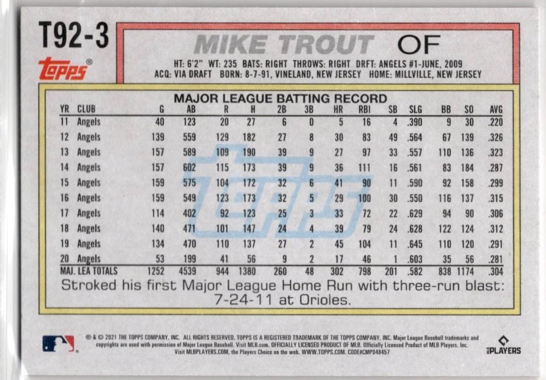 Mike Trout 2021 Topps 1992 Topps Redux #T92-3