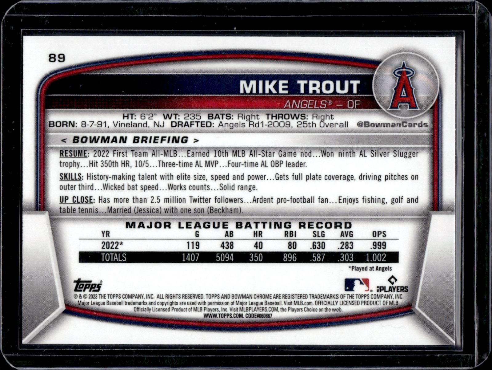 Mike Trout Mega Box Mojo Refracto 2023 Bowman Chrome #89
