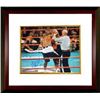 Mike Tyson is a former undisputed heavyweight champion of the world and holds the record as the youngest boxer to win the WBC, WBA and IBF heavyweight titles. Tyson won his first 19 professional bouts by knockout, 12 of them in the first round. After being stripped of the WBC title, Tyson lost his WBA crown to Evander Holyfield in November 1996 by an 11th round TKO. Their 1997 rematch ended when Tyson was disqualified for biting Holyfield's ear. Tyson was well known for his ferocious and intimidating boxing style as well as his controversial behavior inside and outside the ring. Tyson is considered one of the best heavyweights of all time. He has been inducted into the International Boxing Hall of Fame and the World Boxing Hall of Fame. Mike Tyson has hand signed this 16x20 Photo Biting Ear vs Evander Holyfield. MAB Hologram and Certificate of Authenticity from Athlon Sports. Custom White Mat and Mahogany Color Framed as shown.