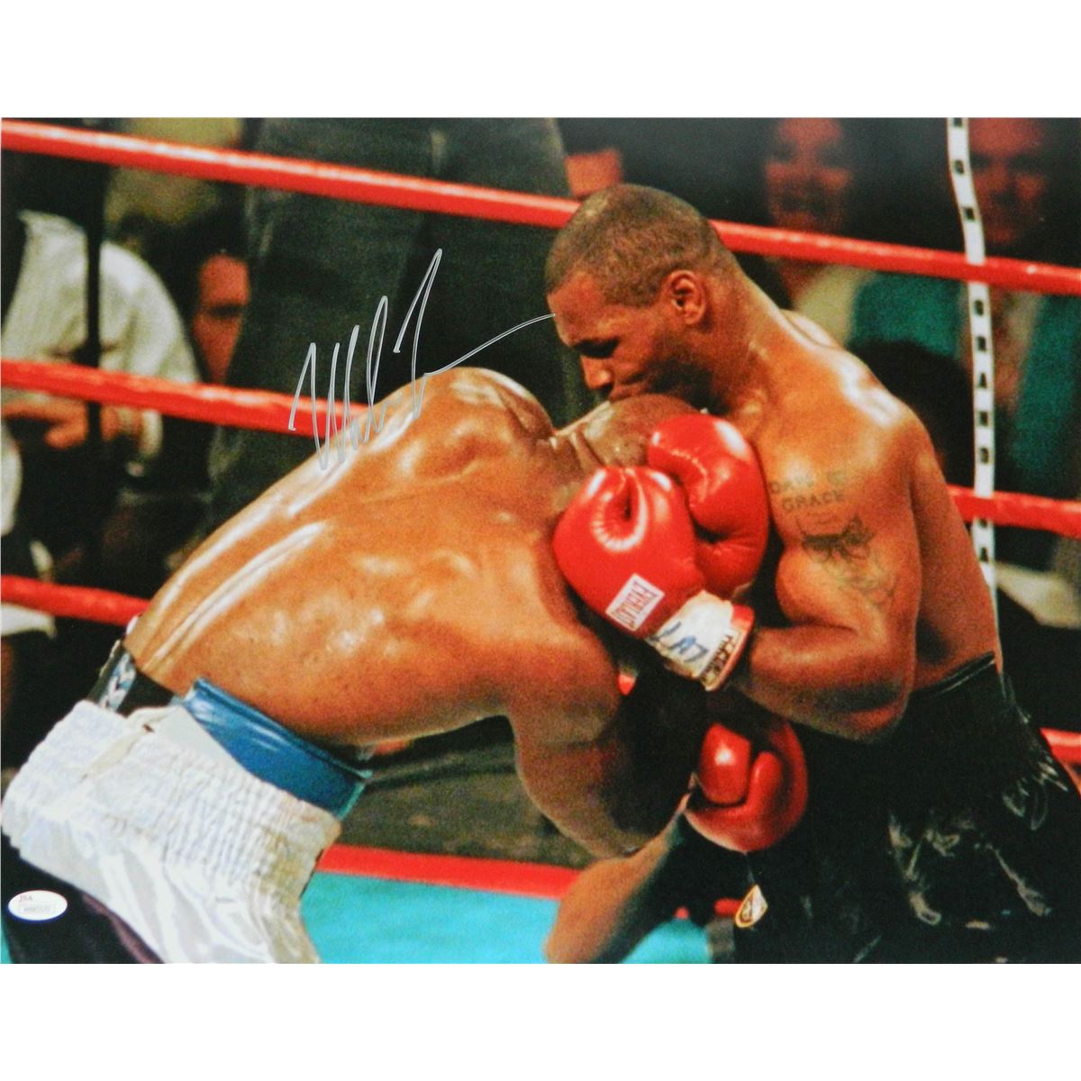 Mike Tyson signed boxing ear bite vs Evander Holyfield 16x20 photo. Item comes with a JSA (James Spence Authentication) tamper evident numbered sticker and matching Certificate of Authenticity which can be verified online.