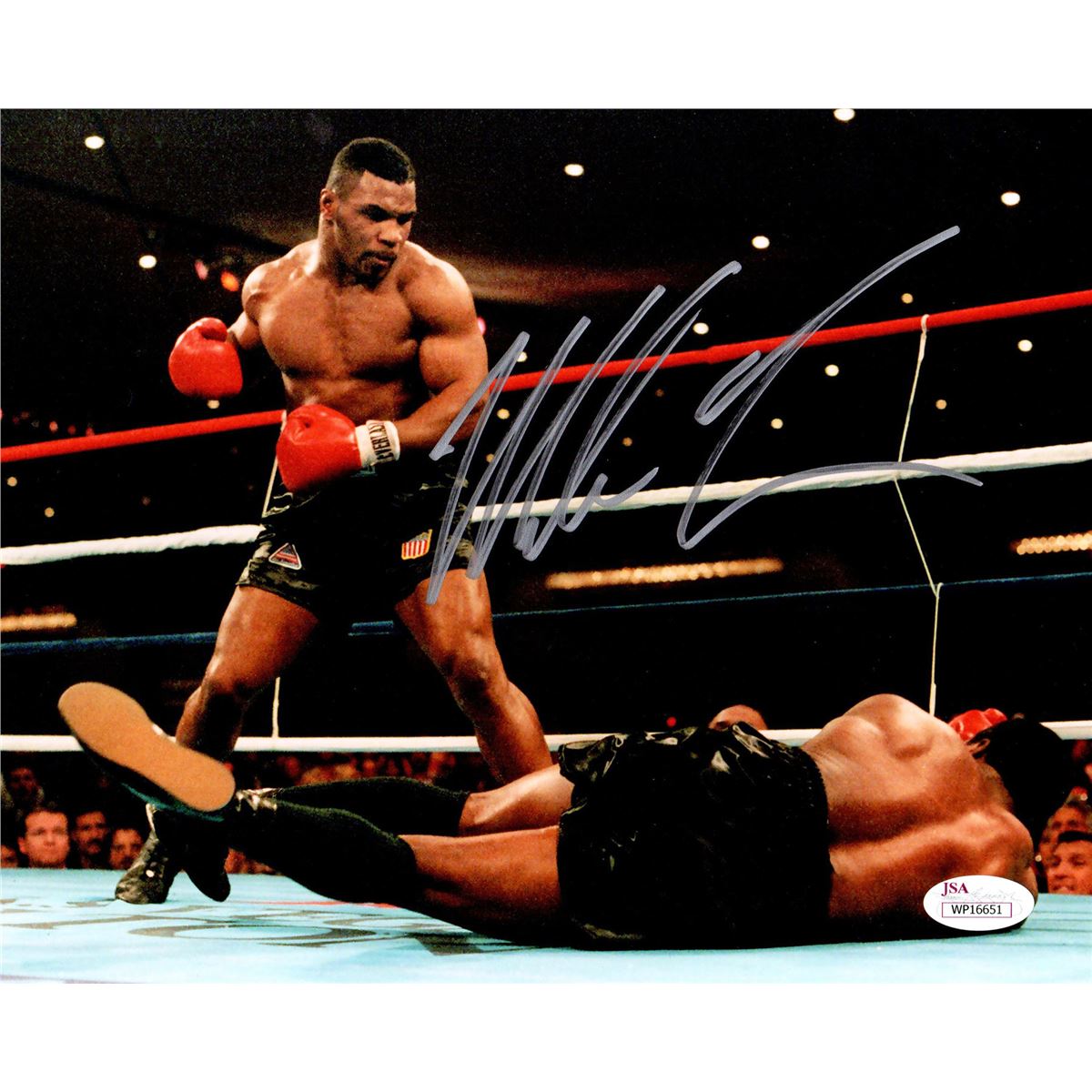 Mike Tyson signed boxing knockout of Trevor Berbick 8x10 photo. Image is of Mike Tyson's knockout against Trevor Berbick during their November 22, 1986 boxing match. Item comes with a JSA (James Spence Authentication) tamper evident numbered sticker and matching Certificate of Authenticity which can be verified online.
