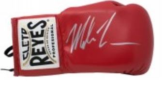 Cleto Reyes boxing glove. Hand-signed in silver paint pen by Mike Tyson (HOF).The lot / autograph(s) includes an official James Spence Authentication (JSA) hologram and matching COA for authenticity purposes. The signing of this item was witnessed by JSA.Authentication: JSA COA. This item comes with a Certificate of Authenticity from a third party authenticator. This Certification of Authenticity does not imply that the item will be certified by any other rival authentication companies. The accompanied certification is the only certification the auction company can confirm. These items are being sold as collectable pieces and there is no guarantee that this item can be resold on any online marketplace. Each of these companies has their own policies and politics.