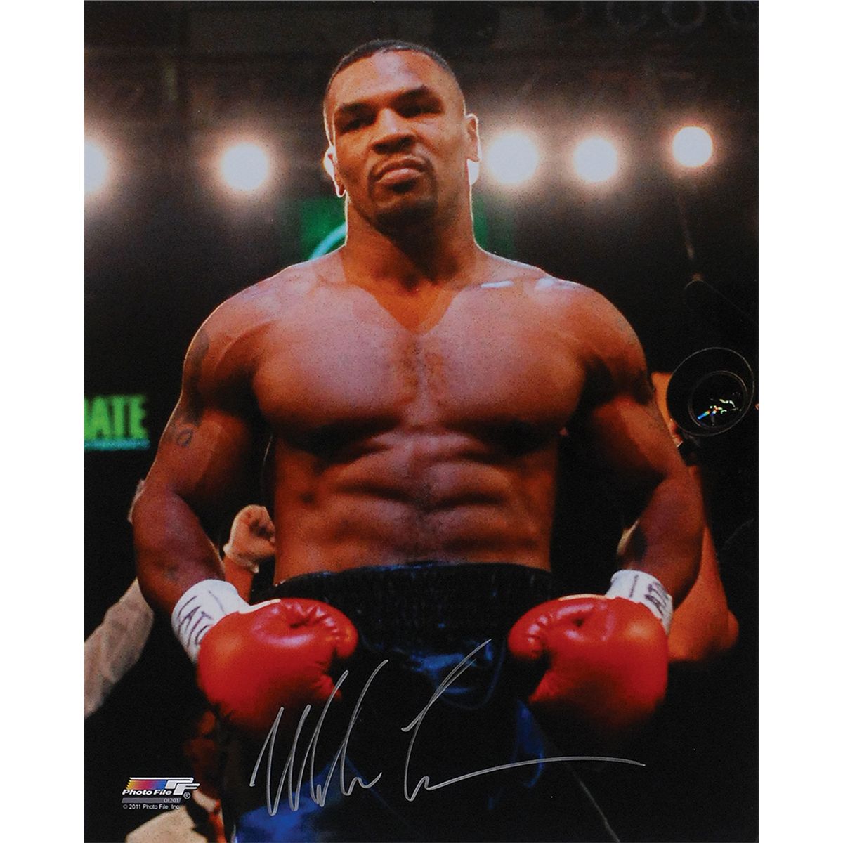 Imposing color glossy 16 x 20 photo of Tyson in the ring, signed in silver ink. Rolled and in fine condition.