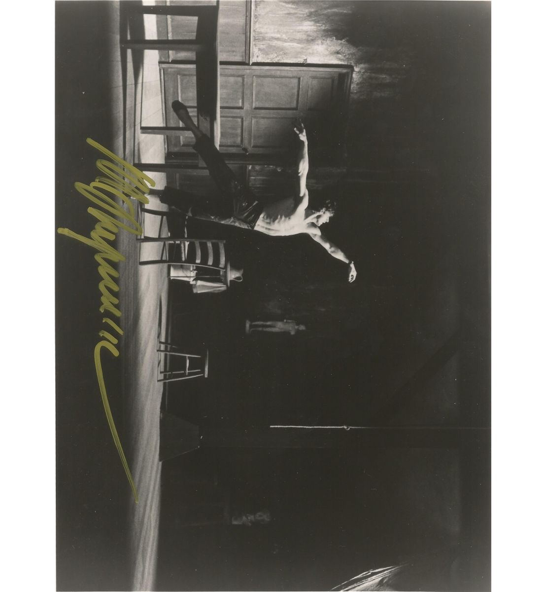 Signed still from White Nights in gold paint pen